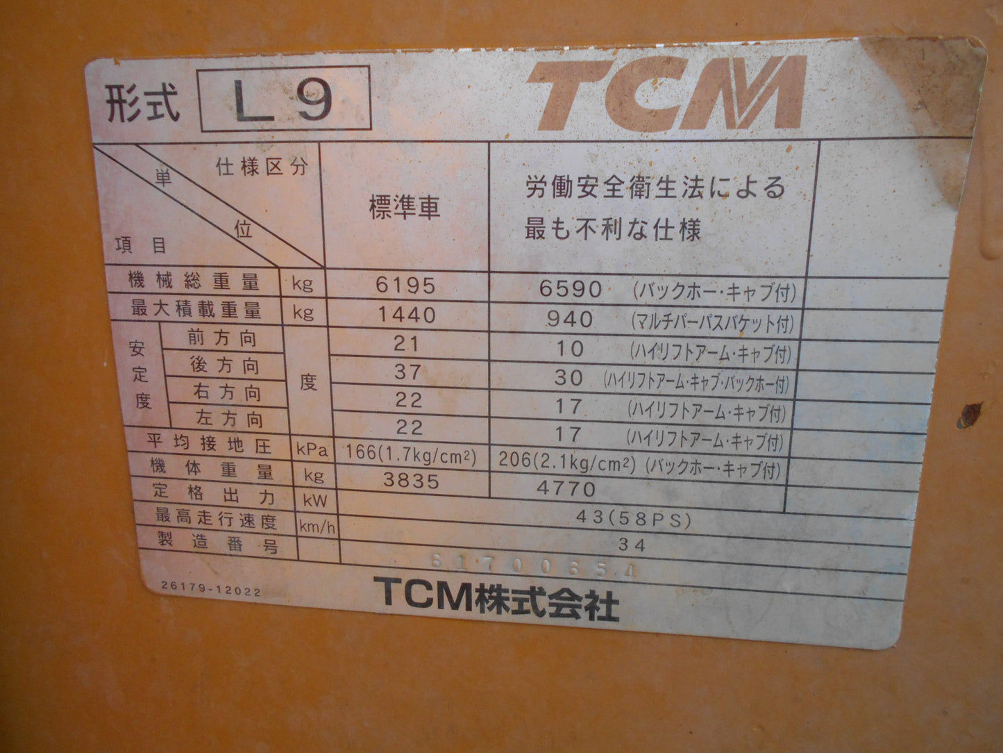 TCM 中古 ホイールローダー L9