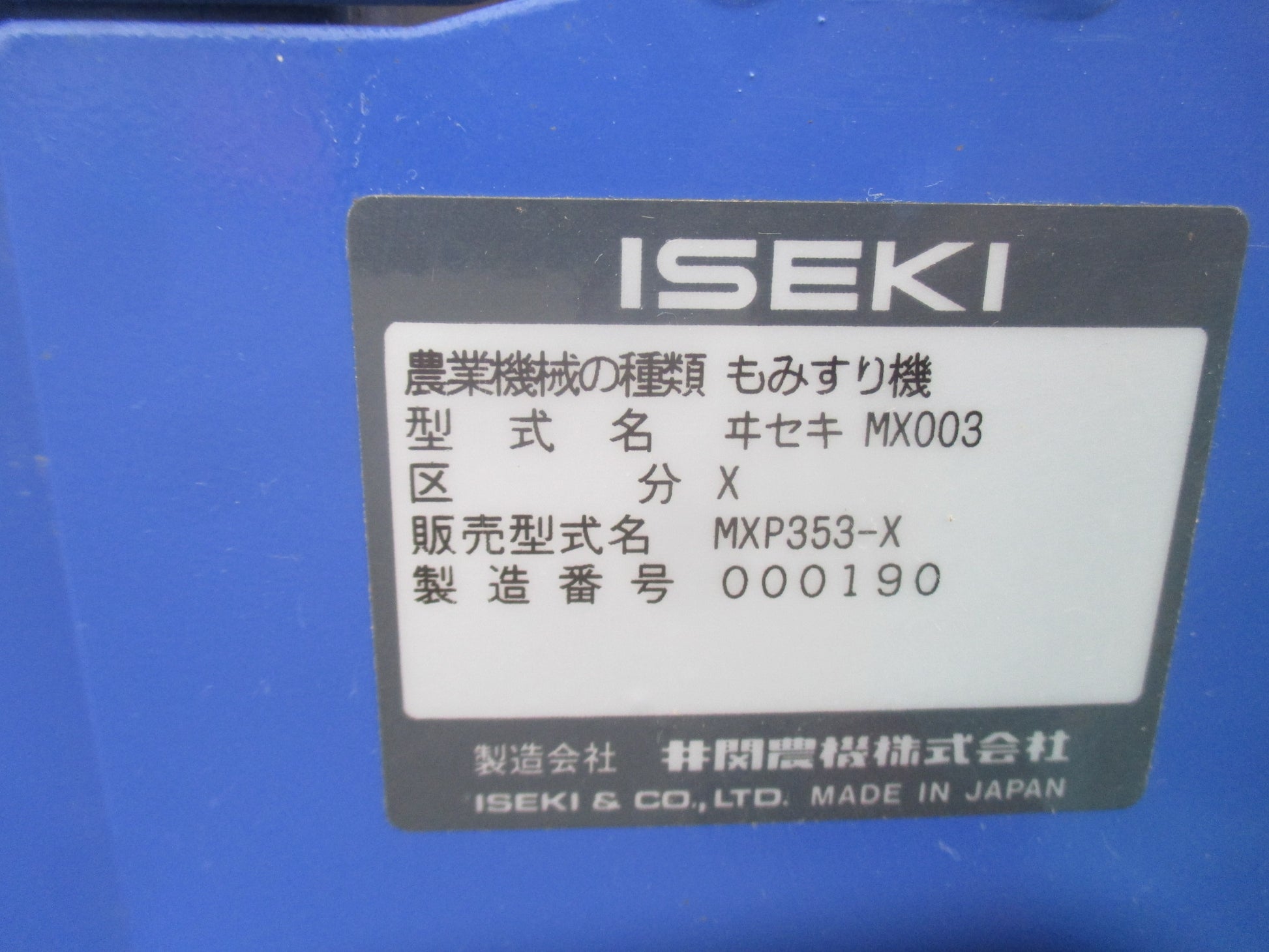 | メーカー名 | イセキ |