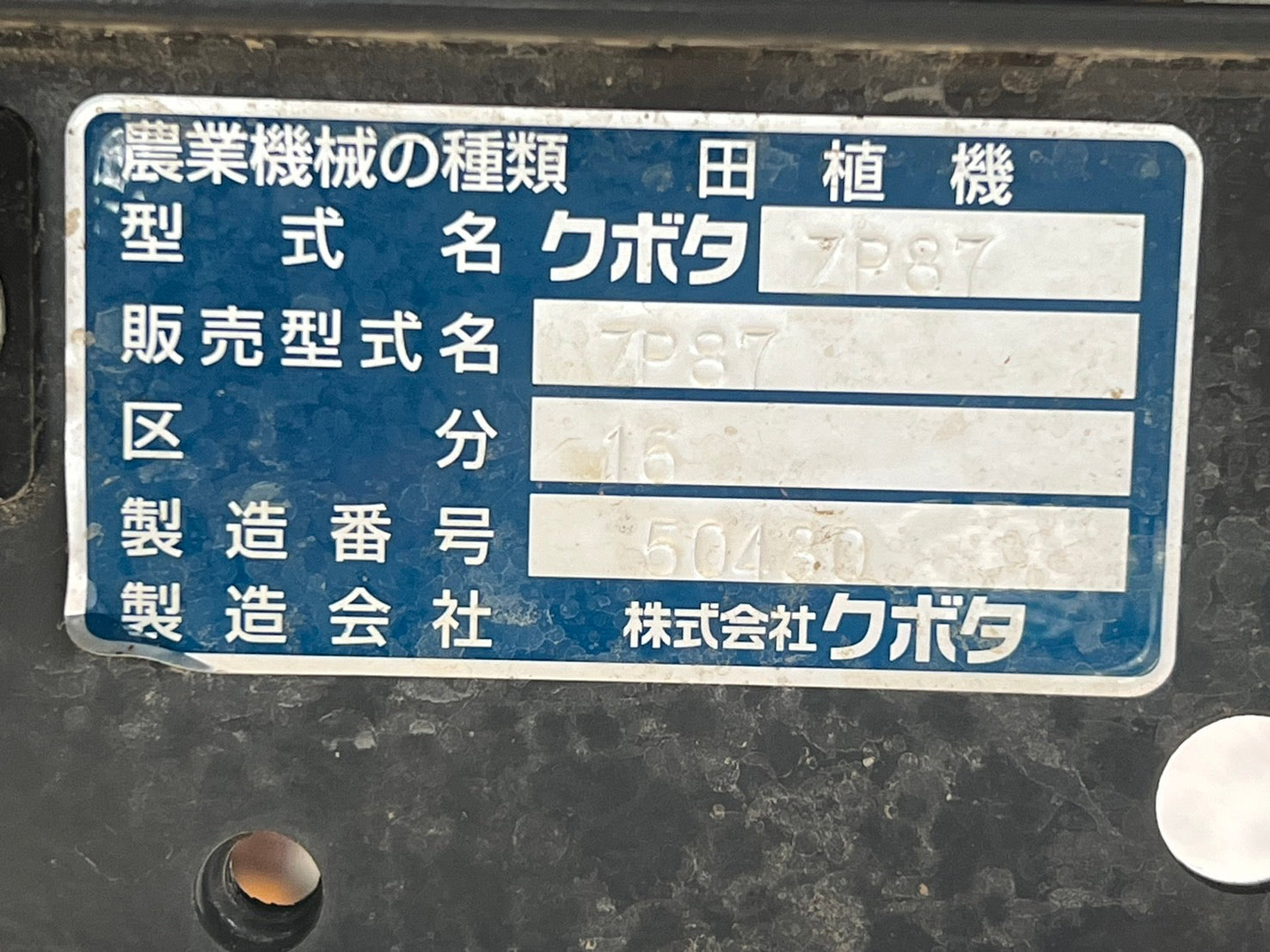 機種:田植機