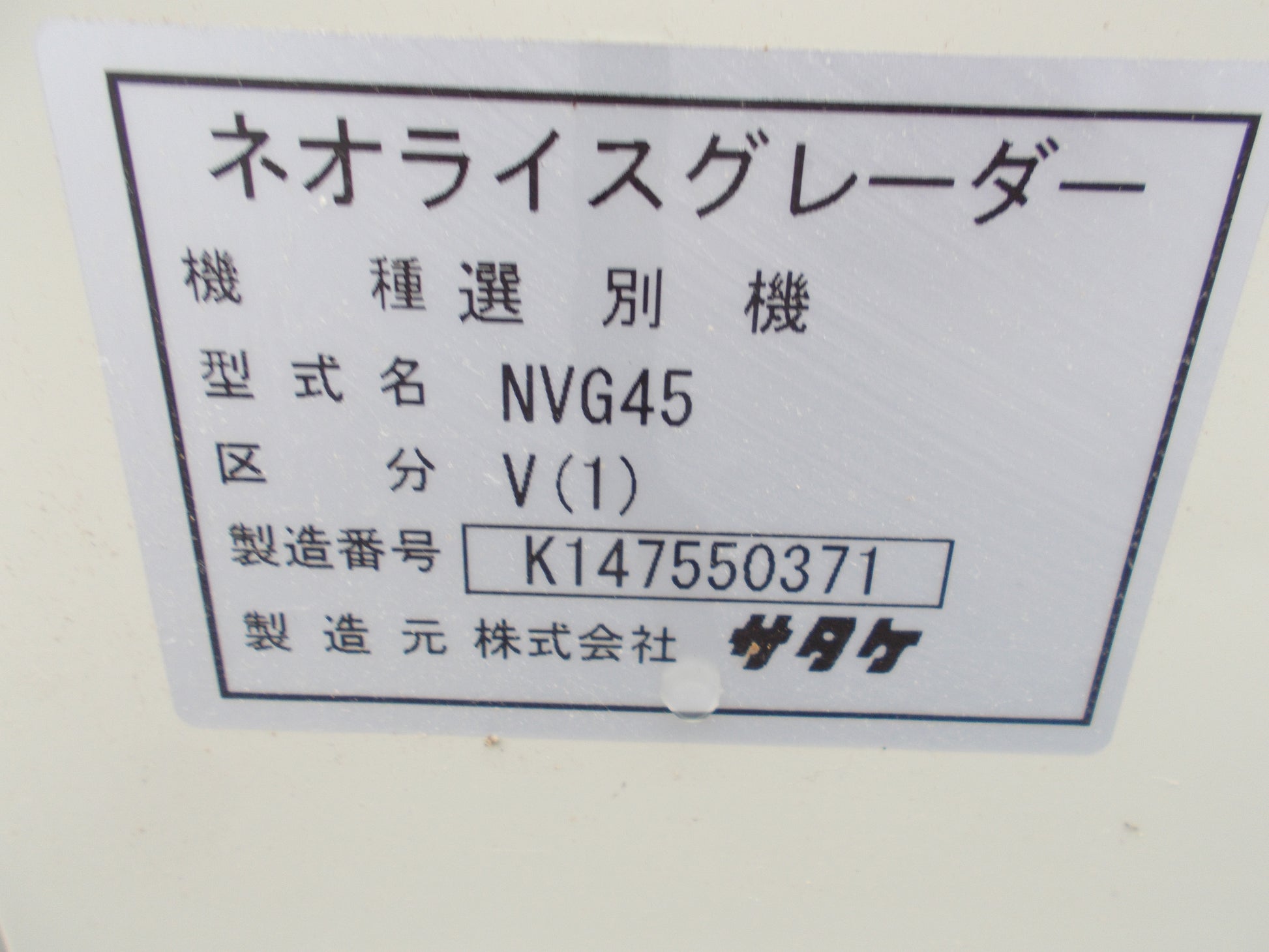 サタケ 中古 選別機 ネオライスグレーダー NGV45