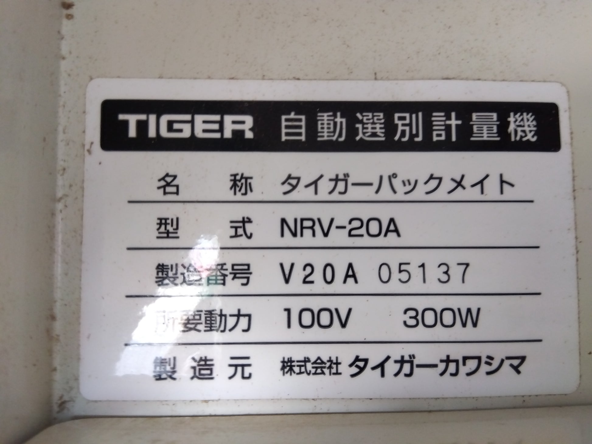 タイガー 中古選別計量機(NRV-20A)です。