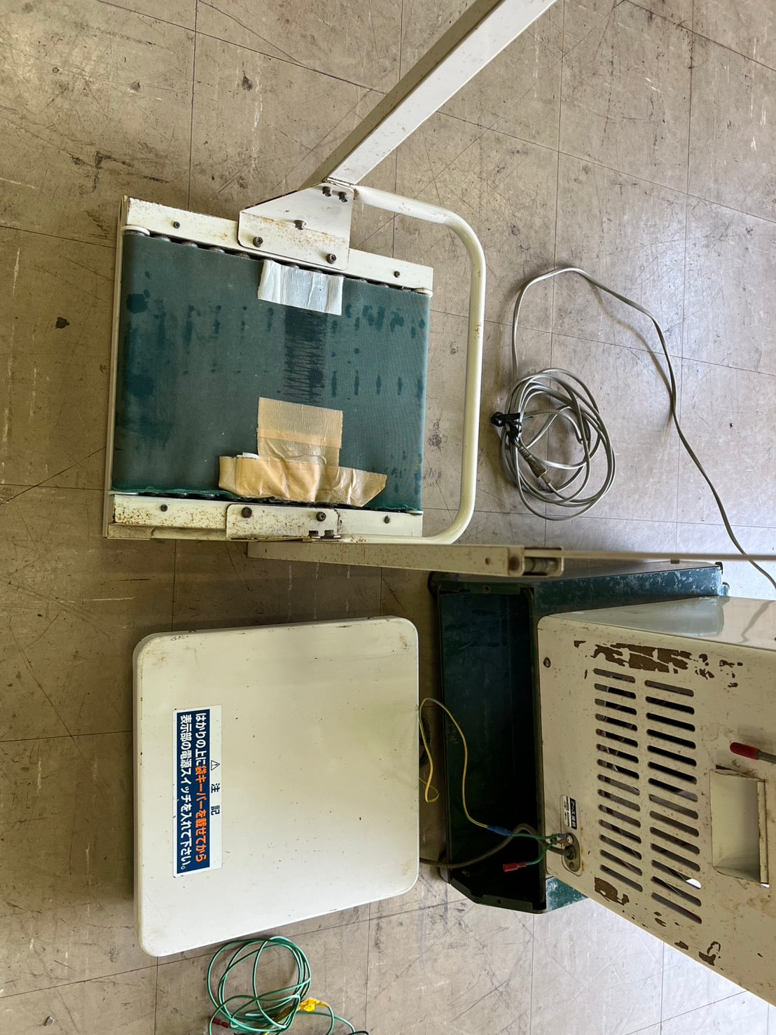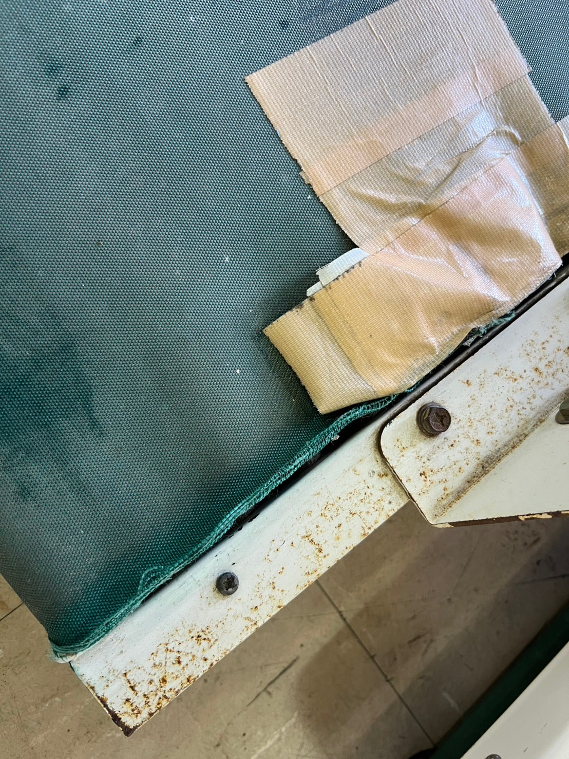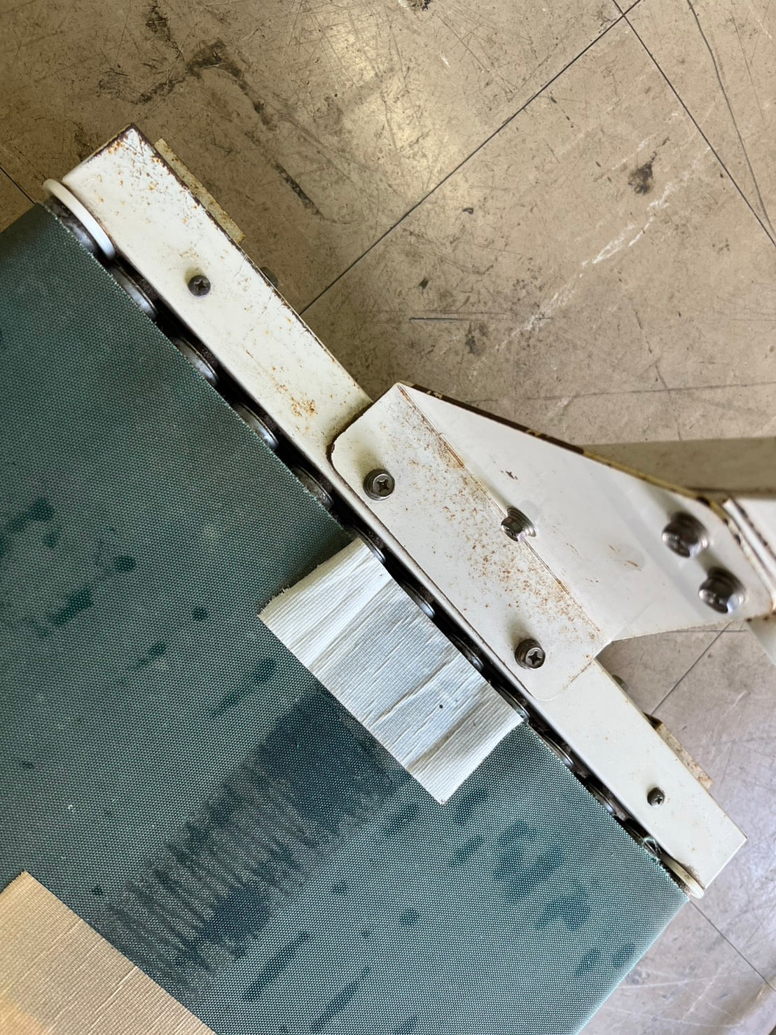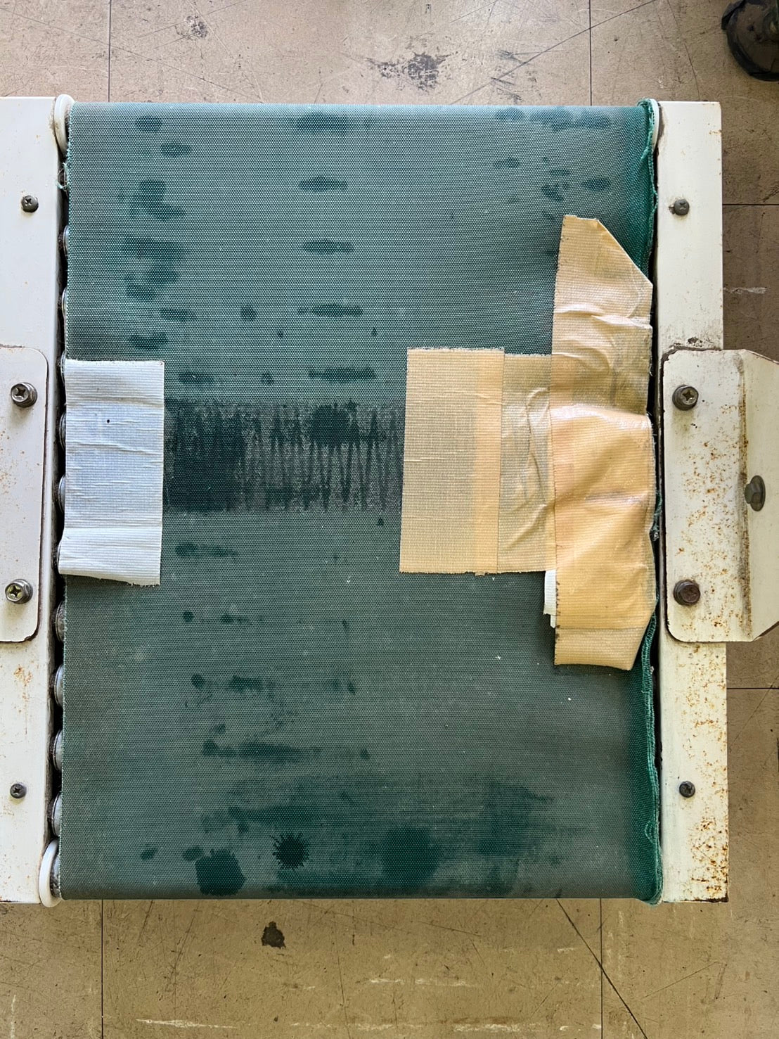 ▼テープ痕多数あります。▼コンベアの布にほつれあります。布の合せ目テープで補強してます。