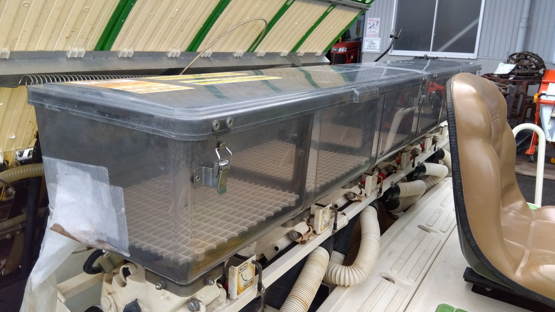 ※施肥機の裏に前使用者が付けたシートがあります。