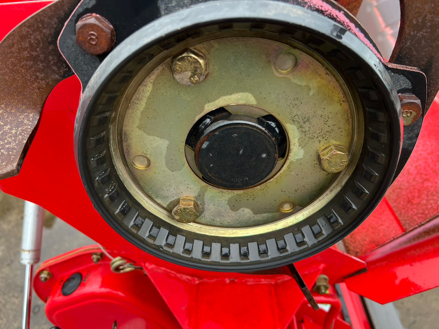 ▼右側サイドローターベアリング付近から『ゴロゴロ』と鳴ります。気になる方は交換を進めます。