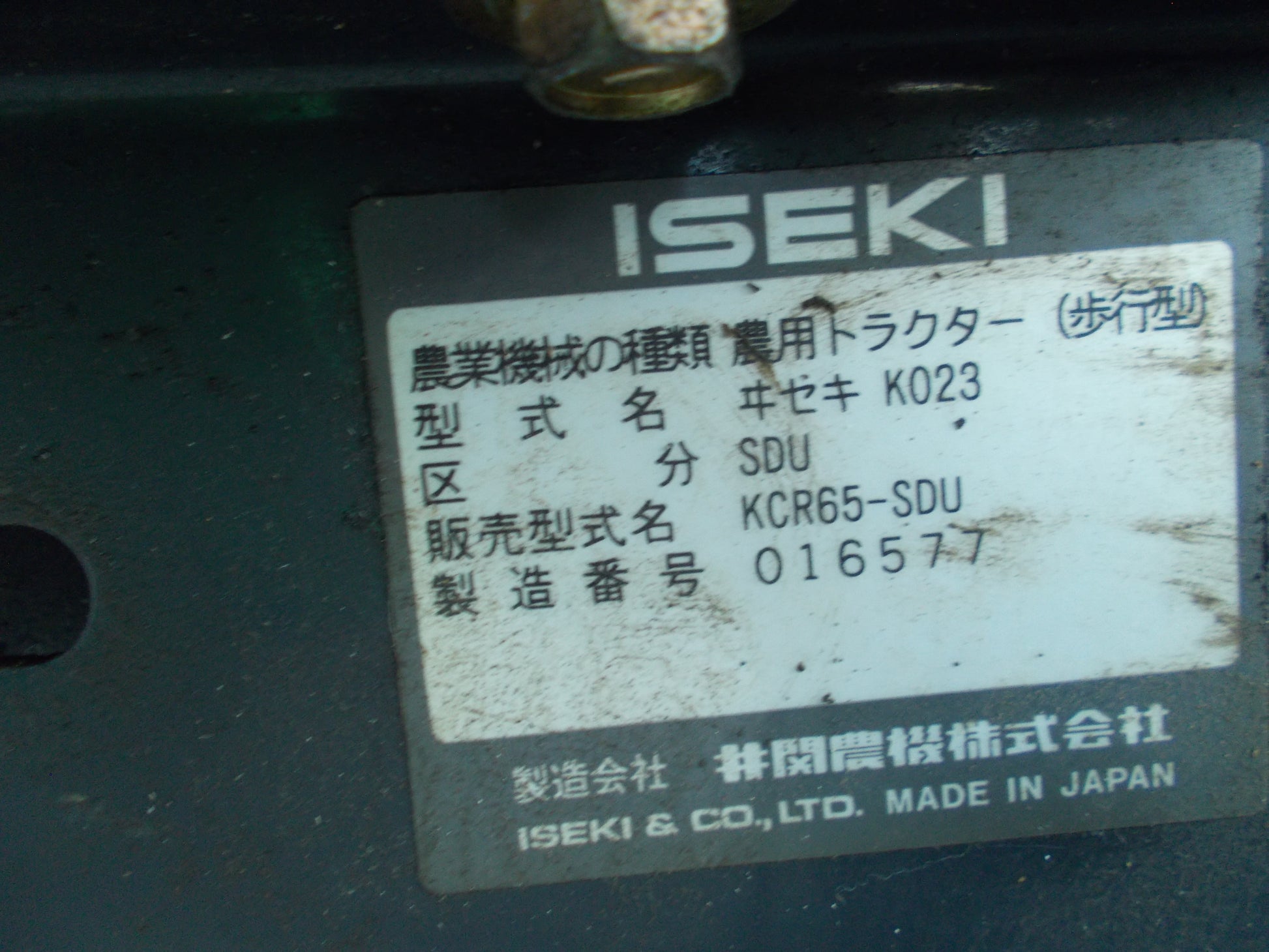 イセキ 中古 耕耘機 KCR65-SDU