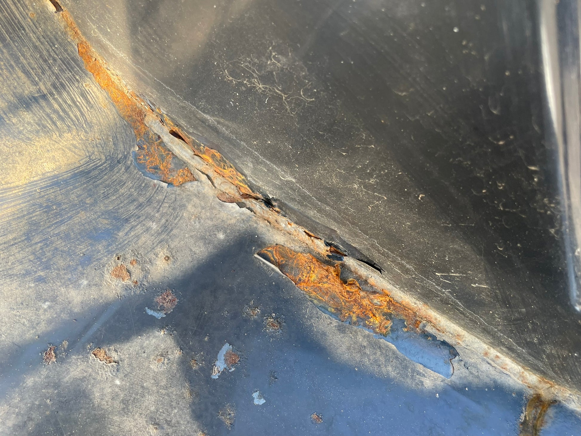 ▼バケットに一部剥がれ、サビがあります