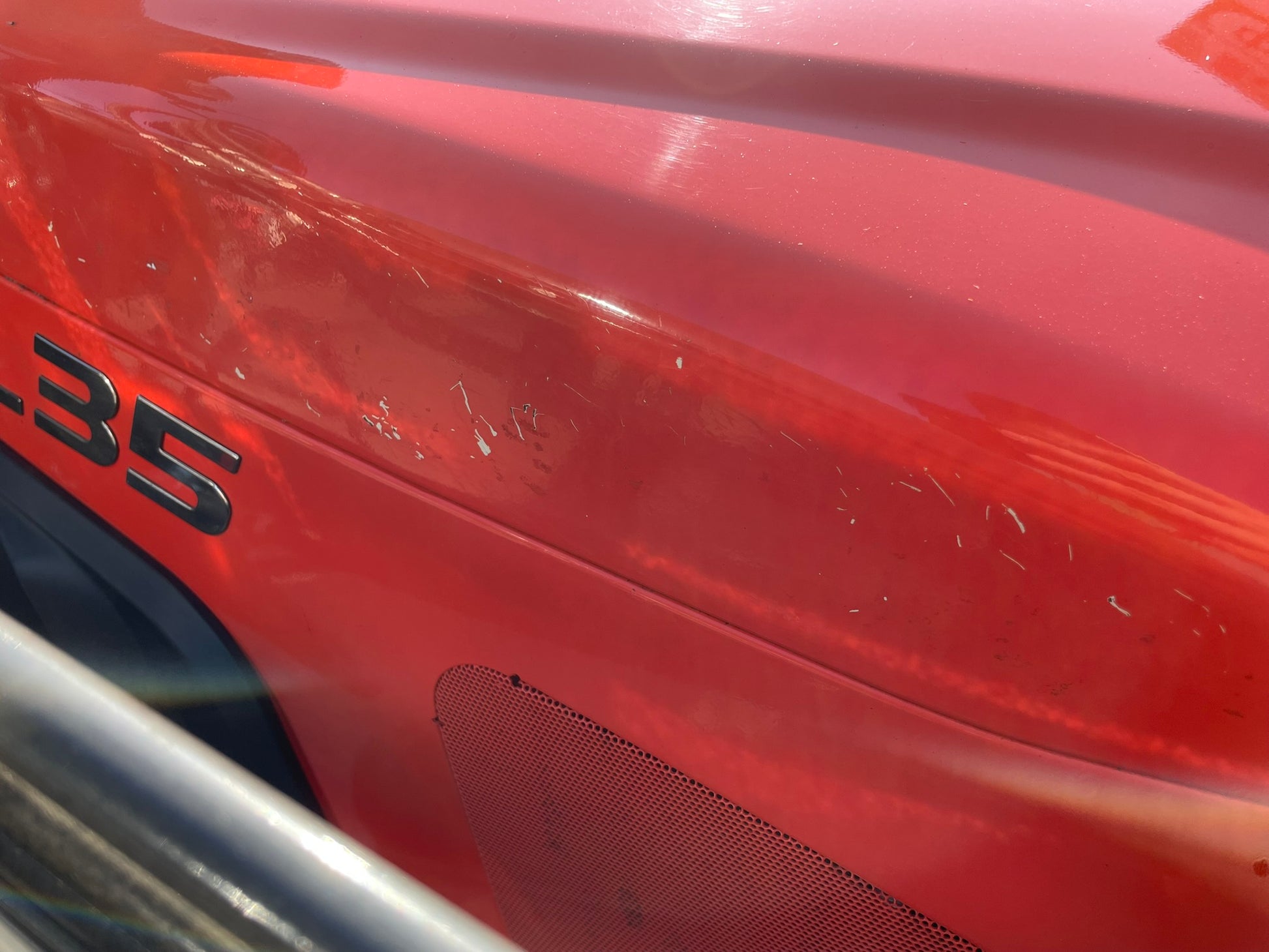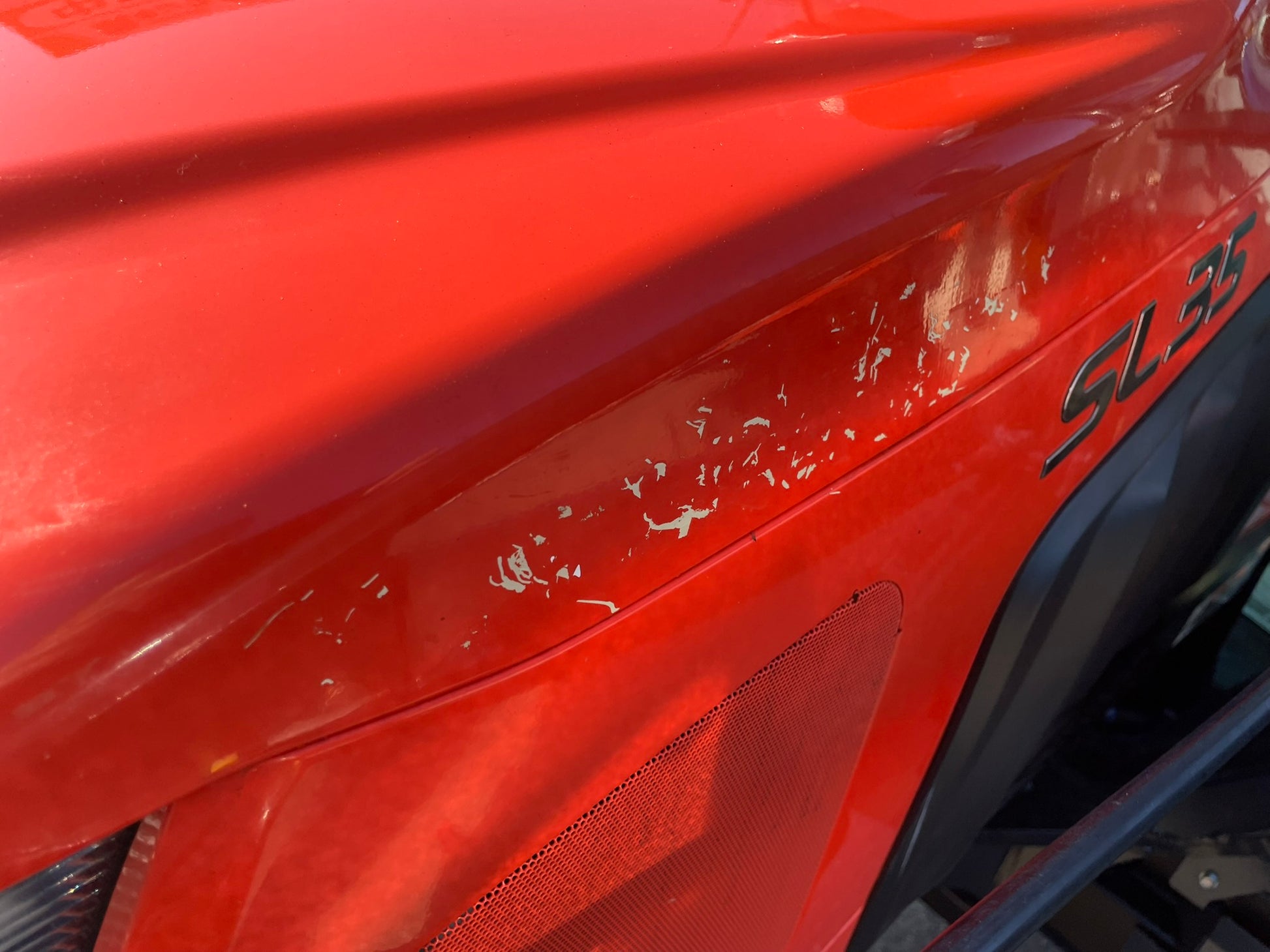 ▼ボンネット、フロントローダーのフレームにステッカーを剥がした際の塗装剥がれがあります