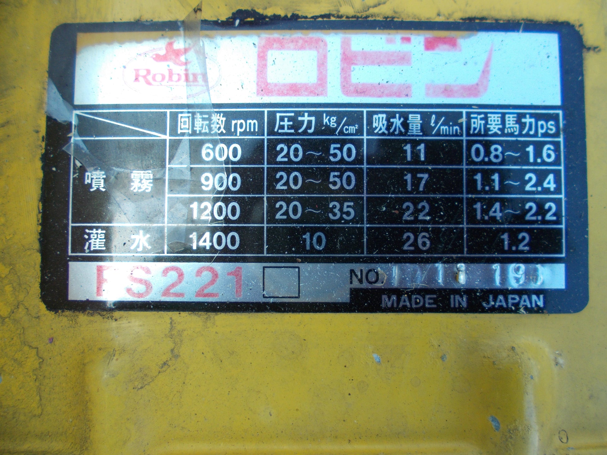 ロビン 中古 セット動噴 FS221