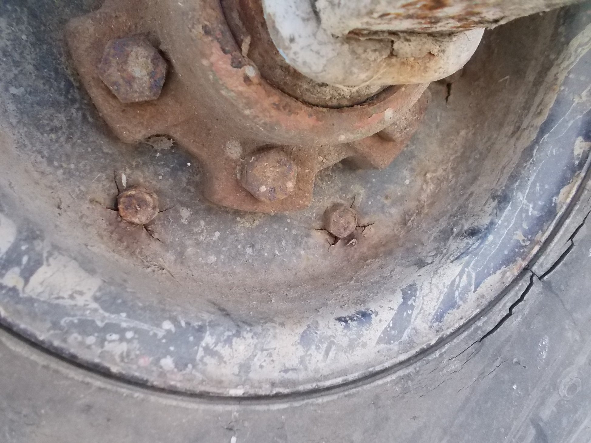 ★左右、合わせホイール固定用ボルト部にホイルのひび割れがあります。(画像15.16枚目)
