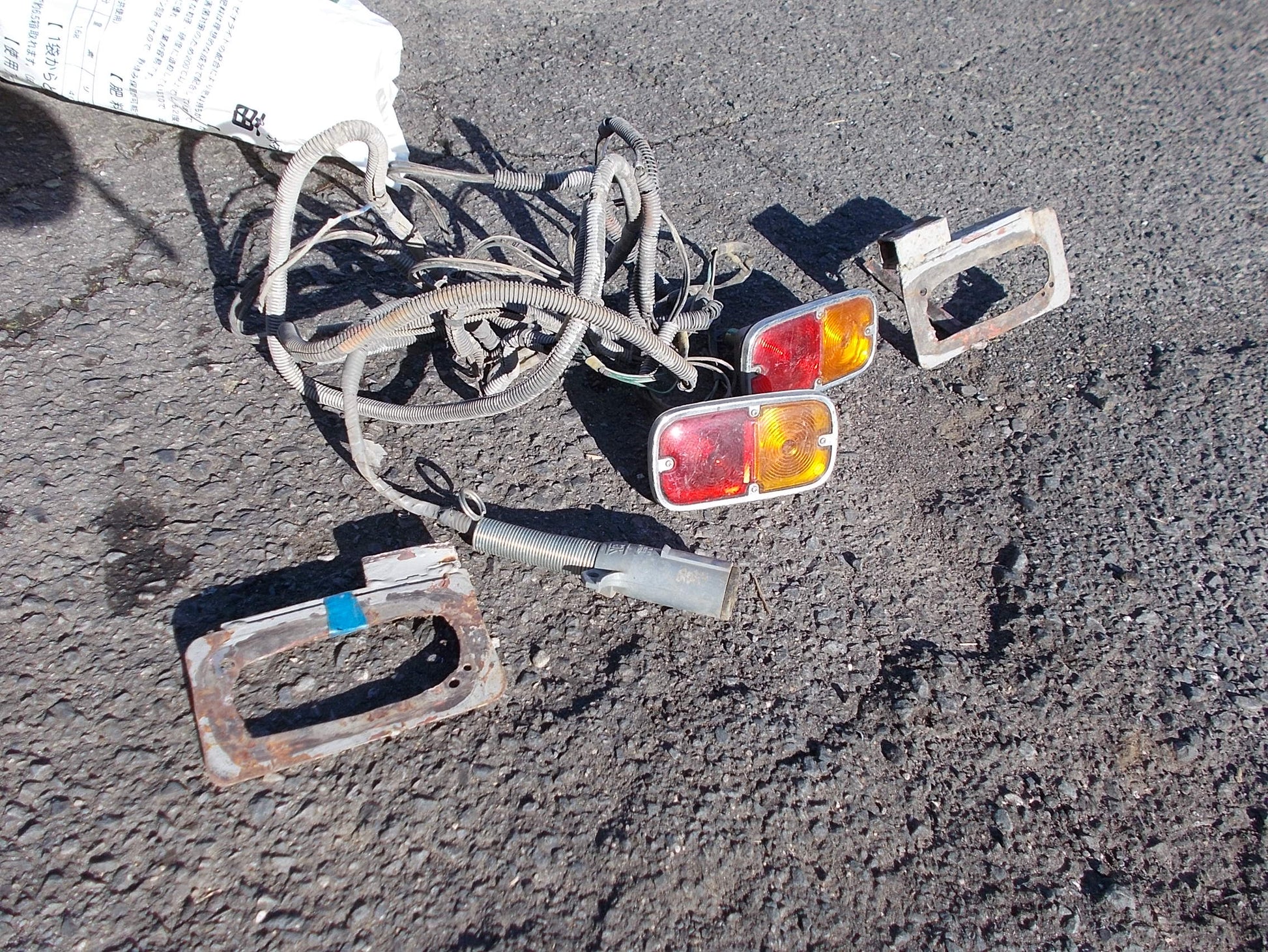・付属品 テールランプ左右と接続カプラー付き配線(ランプステーはトレーラー本体より溶接をはがして取り外した状態です)