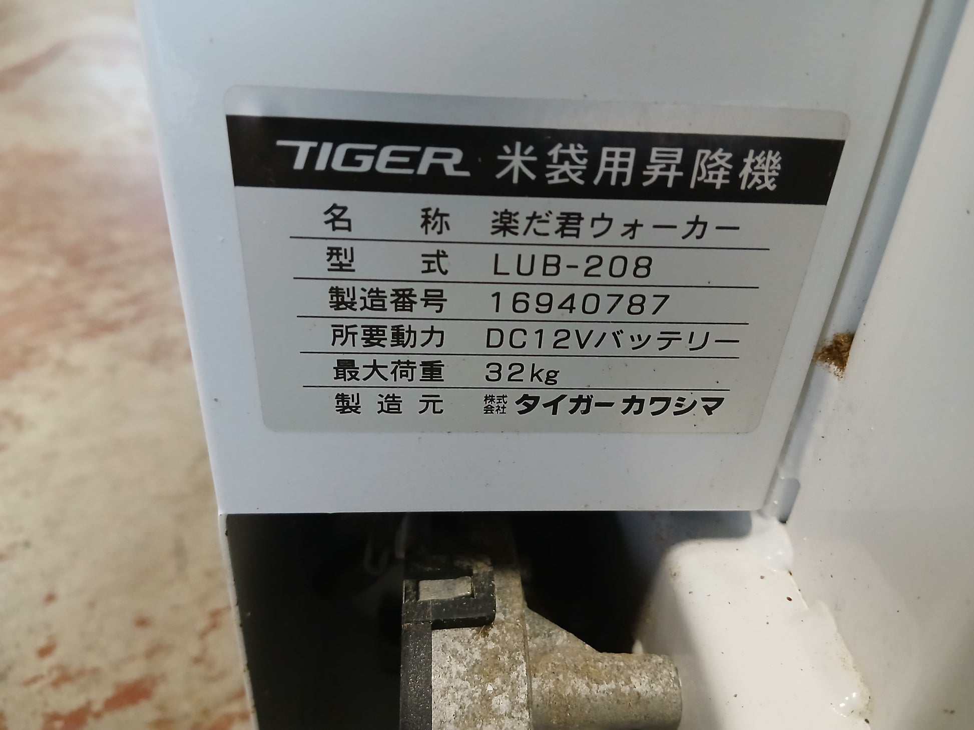 タイガー 中古 米袋昇降機 楽だ君 LUB-208 バッテリー式【宮城2609】