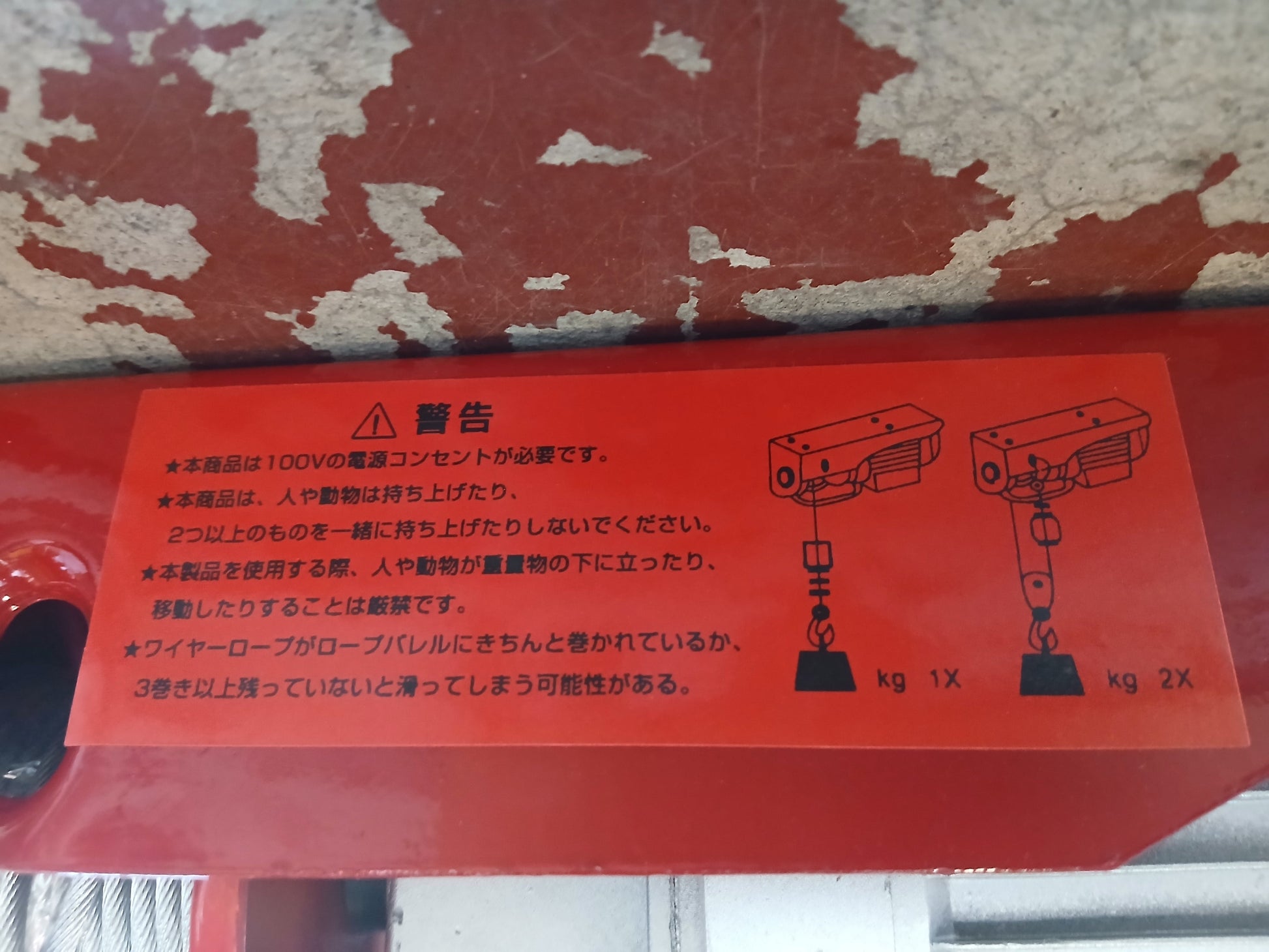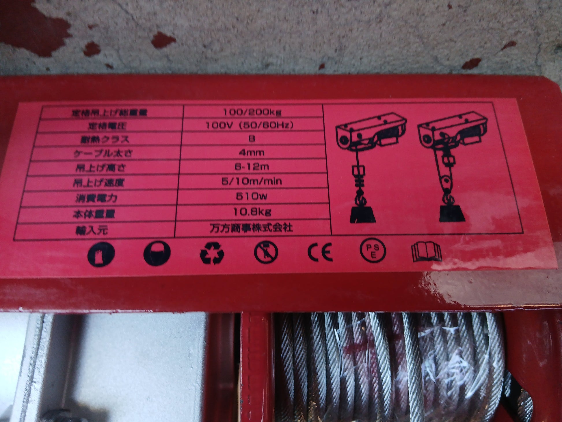 定格吊上げ総荷重:100㎏(1本吊り時最大)・200㎏(動滑車使用時最大)