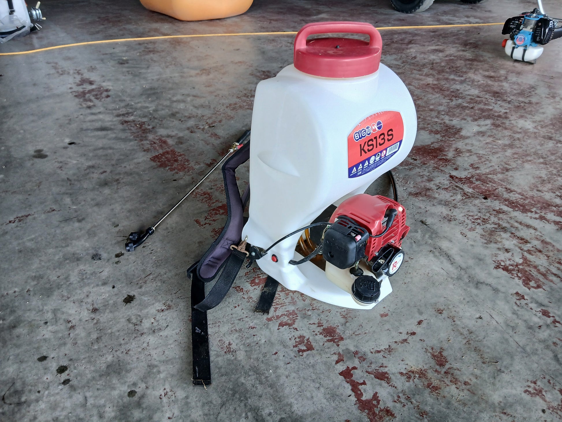タンクに水を入れエンジンを始動し、噴霧動作の確認済みです。