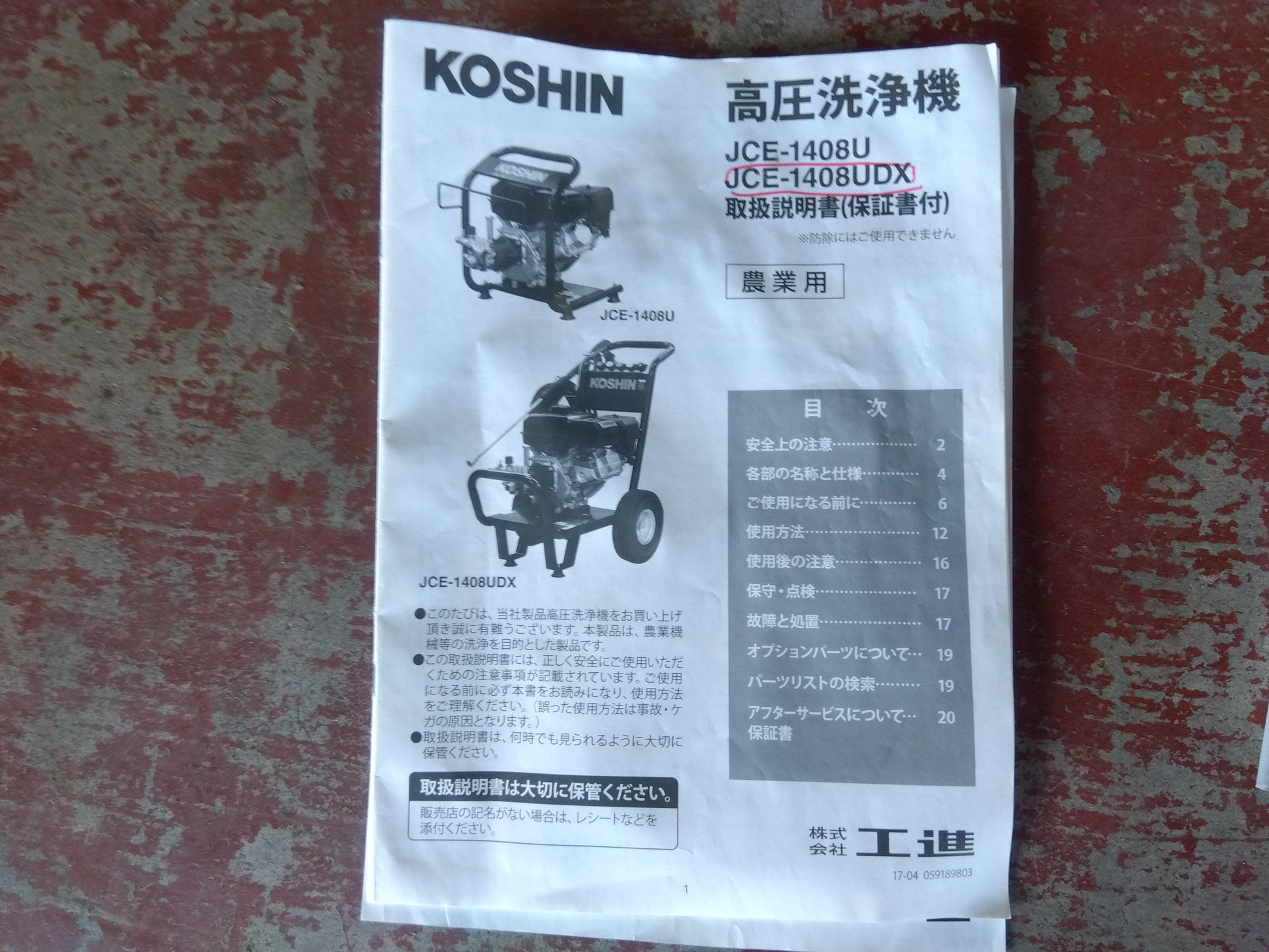 工進 中古 高圧洗浄機 JCE-1408UDX 【宮城店2766M】